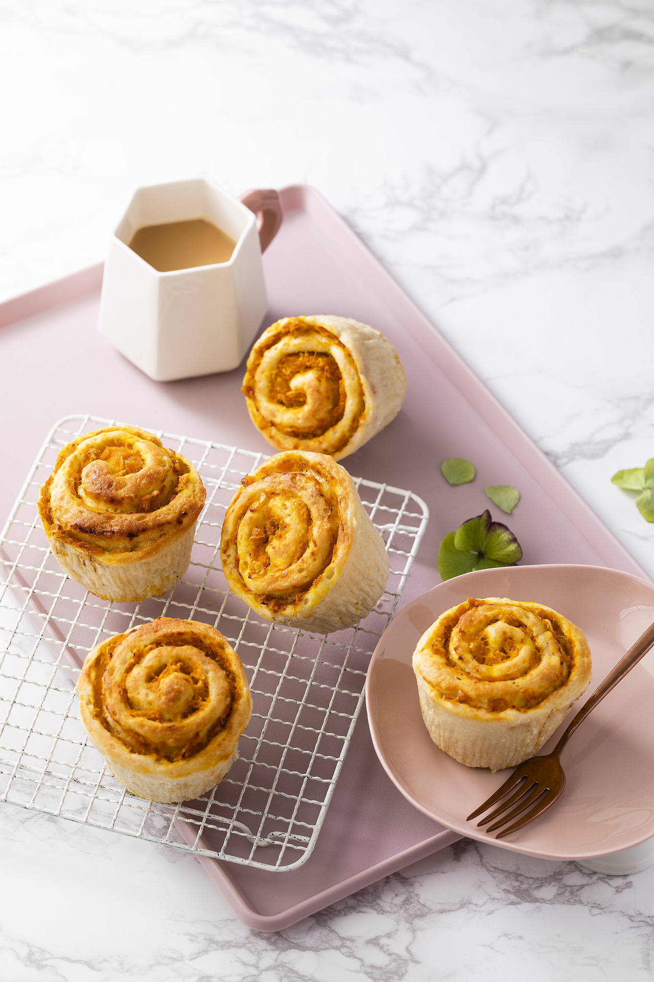 - 5. 말린 반죽을 약 4cm 크기로 잘라 머핀틀에 넣어 틀에 꽉 찰때까지 발효한다.