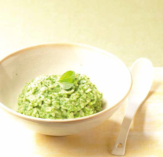 밥 180g(1컵), 시금치 50g(1/2개), 마 10g(5cm), 두유 150g(3/4컵), 소금 1g, 버터 8g(1½작은술), 후춧가루 1g