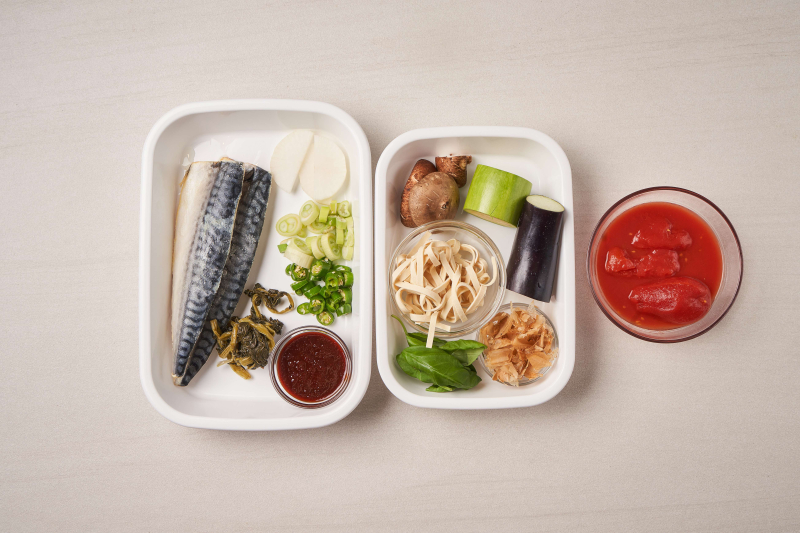 • [추가 재료] 토마토 홀(200g), 가지(60g), 애호박(90g), 표고버섯(40g), 두부면(50g), 가다랑어포(2g), 바질 잎(2g), 식용유(20g), 물(3컵=600g)