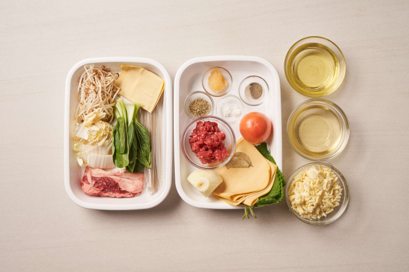 • [추가 재료] 쌈두부(1팩=100g), 모차렐라 치즈(1컵=100g), 깻잎(10g), 완숙 토마토(80g), 양파(80g), 소고기 다짐육(100g), 화이트 와인(50g), 오레가노(5g), 월계수 잎(1g), 다진 마늘(20g), 식용유(30g), 소금(5g), 후추(3g)