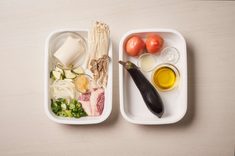 • [추가 재료] 토마토(260g), 가지(120g), 올리브유(50g), 레몬즙(8g), 소금(15g), 후추(6g)