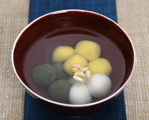 찹쌀가루(200g), 치자(10g), 오미자(10g), 대추(5알), 귤병(20g), 유자청(30g), 꿀(50g), 녹말(50g), 잣(10알)