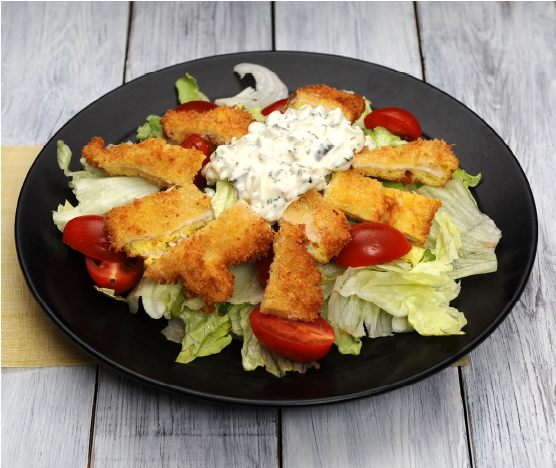 돼지등심(120g), 정종(10g), 소금(0.3g), 후춧가루(0.02g) 우유(30g), 밀가루(20g), 달걀(50g), 빵가루(20g) 튀김기름(400g) - 소스 : 삶은 달걀(50g), 피클(20g), 마요네즈(20g) - 곁들임채소 : 방울토마토(30g), 양상추(30g) 어린잎채소(10g), 파슬리가루(0.3g)