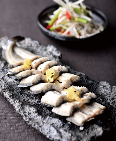 - 6. 모든 채소를 한데 섞어 샐러드소스로 버무려 샐러드를 만들어주고 장어와 함께 완성한다.