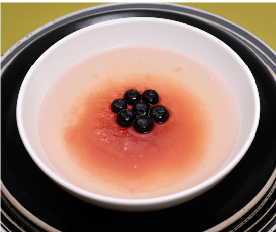 토마토(120g), 판젤라틴(10g), 레몬(10g), 올리고당(20g) 블루베리(20g), 설탕(20g)