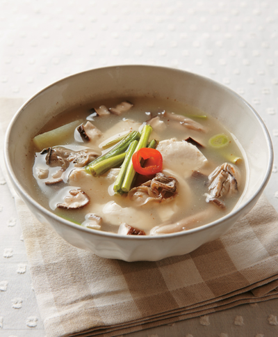 재료 굴(40g), 멸치(2g), 표고버섯(10g), 느타리버섯(40g), 무(20g) 양파(10g), 미나리(10g), 대파(3g), 붉은 고추(2g), 순두부(100g) 양념 다진 마늘(1g), 들깻가루(10g), 국간장(1.5g), 소금(0.5g)