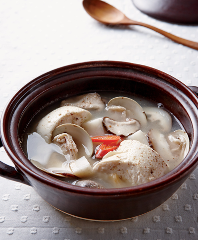 재료 토란(40g), 표고버섯(20g), 붉은 고추(1g), 청양고추(2g) 백합(150g), 들깻가루(40g), 순두부(150g)