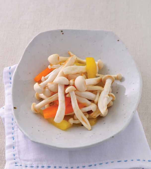 백일송이버섯볶음 백일송이버섯 65g(1컵), 노랑 파프리카 5g(5×1cm), 빨강 파프리카 5g(5×1cm), 카놀라유 3g(2/3작은술)