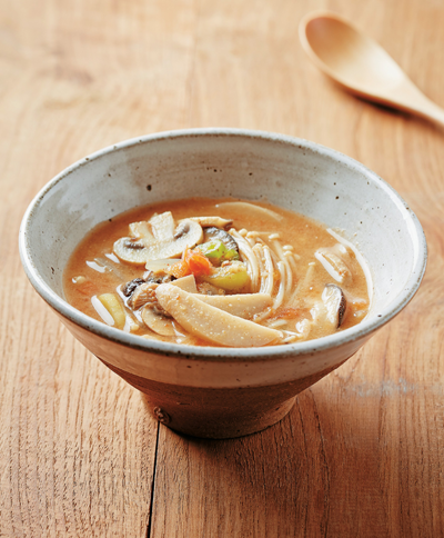 재료 표고버섯(15g), 팽이버섯(35g), 양송이(30g), 새송이버섯(17g) 양파(25g), 대파(3g), 청양고추(3g), 토마토(25g) 된장양념 콩가루(5g), 요구르트(15g), 저염된장(10g) 육수 멸치(2g), 다시마(1g), 물(400g) 양념 다진 마늘(2g), 고춧가루(0.7g), 들깻가루(8g)