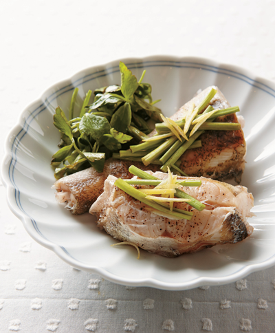 재료 미나리(20g), 명태(150g), 후춧가루(0.1g) 레몬소스 설탕(7g), 레몬(108g), 식초(6g), 저염간장(4g)