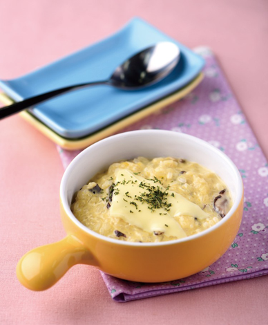 단호박 50g, 우유 180mg, 유기농 아기치즈 27g 멥쌀 60g, 생 표고버섯 15g, 참기름 5g, 볶은소금 1g