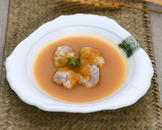 소고기(우둔살, 50g), 새우(3마리), 흰살생선(100g), 단호박(1/2개), 고구마(50g), 녹말(10g), 달걀(1개), 된장(30g), 소금(0.1g)