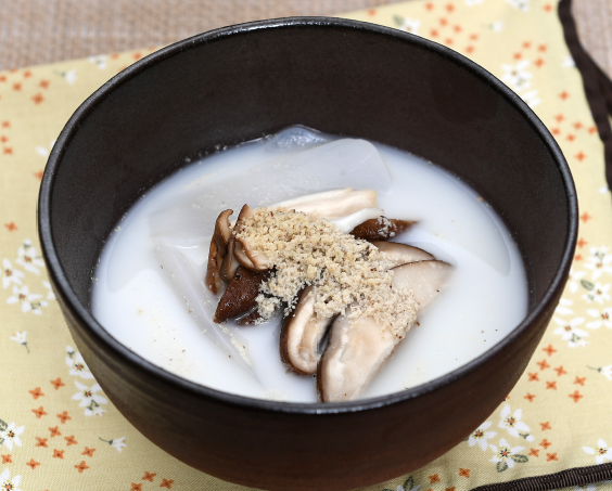 곤약(150g), 표고버섯(1개), 새송이버섯(1개), 들깨가루(200g), 사골육수(400g), 마늘(5g), 식초(0.3g)