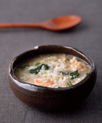 귀리밥 100g, 아욱 30g, 건새우 25g, 칵테일새우 25g, 저염 된장 30g