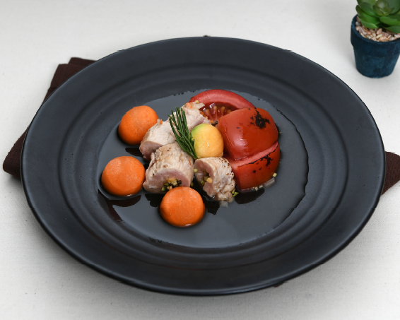 돼지고기(안심, 120g), 당면(50g), 애호박(1/2개), 당근(30g), 표고버섯(20g), 목이버섯(10g), 양파(50g), 마늘(20g), 토마토(100g), 매실액(50g), 후춧가루(0.2g)