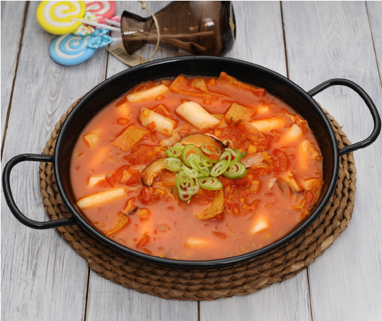 떡볶이떡(100g), 어묵(20g), 양파(20g), 당근(20g) 표고버섯(20g), 양배추(20g), 대파(20g), 육수(100g) - 소스 : 고추장(20g), 케첩(20g), 올리고당(20g), 다진마늘(10g) 토마토(100g), 사과(20g), 버터(10g)