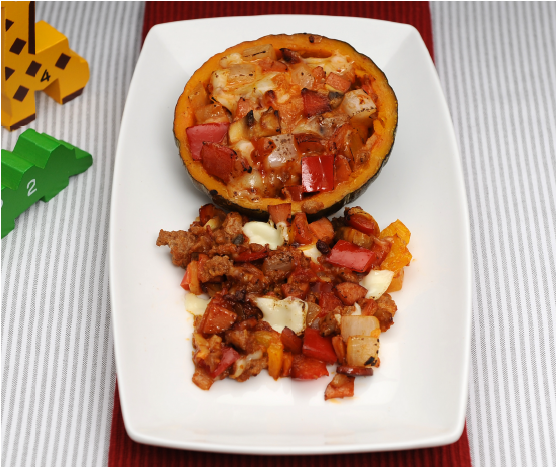 다진 소고기(20g), 다진 마늘(10g), 소금(0.2g) 후춧가루(0.02g), 맛술(10g), 미니단호박(120g), 생크림(20g) 양송이(20g), 양파(20g), 당근(20g), 청피망(20g) 파프리카(20g), 베이컨(20g), 햄(20g), 올리브오일(10g) 모짜렐라치즈(20g), 파슬리가루(0.5g)