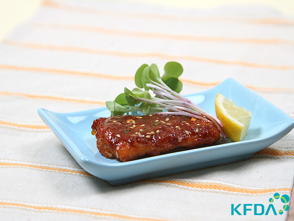갈치구이 : 갈치 50g, 현미유 4g 고추장양념 : 고추장 5g, 양파 5g, 파 3g, 다진 마늘 2g, 간장 2g, 매실액 2g, 고춧가루 1g, 다진 생강 0.5g, 통깨 0.1g, 후춧가루 0.3g
