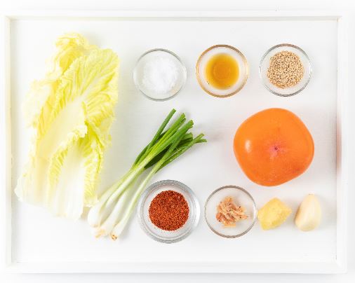 •필수 재료 : 통배추(25g), 쪽파(1g), 마늘(1g), 생강(0.5g) •양념 : 소금(0.1g), 홍시(1g), 고춧가루(1g), 젓갈(1g), 통깨(1g), 참기름(0.5g)