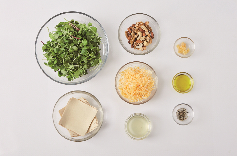 [ 2인분 ] 어린잎채소(4컵), 견과류(1컵), 건두부(10장), 슈레드 모차렐라치즈(1컵), 라임청(3ts), 후춧가루(약간), 올리브유(2ts), 다진 마늘(0.3ts)