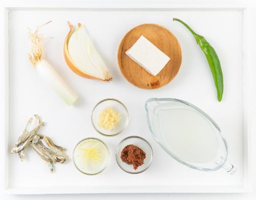 배추 20g, 두부 30g, 양파 20g, 대파 10g, 다시멸치 5g, 청양고추 1g, 다진마늘 0.5g, 생강즙 0.5g, 된장 2g, 쌀뜨물 60ml, 물 300ml