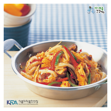 낙지 20g, 쭈꾸미 20g, 생면 80g, 배추 20g, 양파 13g, 느타리버섯 13g, 표고버섯 13g [소스소개] 볶음소스:청피망 8g, 홍피망 5g, 청양고추 15g, 대파 13g, 굴소스 1g, 고춧가루 2g, 매운고춧가루 2g, 소금 0.2g