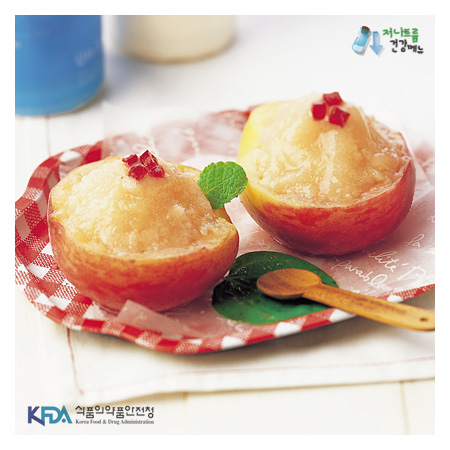 - 4. 속을 파낸 복숭아도 냉동실에서 얼려 샤벳 그릇으로 사용한다.