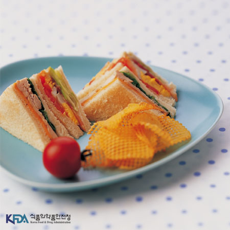식빵 40g, 마요네즈 2g, 삶은달걀 15g, 양상추 8g, 닭가슴살 13g, 토마토 20g, 치즈슬라이스 4g, 슬라이스햄 4g, 베이컨 4g, 소금적당량, 후추적당량
