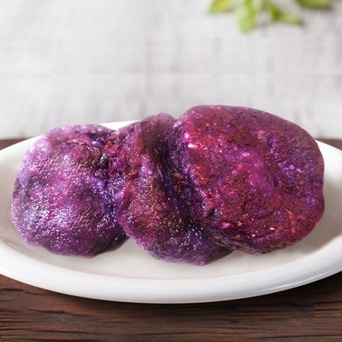 반죽: 찹쌀(30g), 자색고구마 20g, 소금(0.2g), 현미휴(3g), 물(17g), 황설탕(7g) 호떡소: 검정깨, 땅콩, 호두(각 2g), 찹쌀가루(0.5g), 계피가루(0.2g)