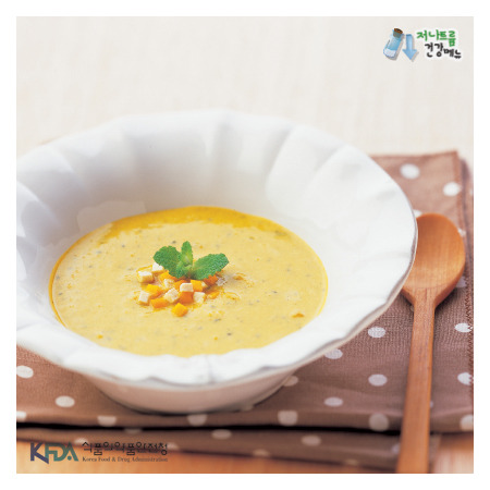 단호박 40g, 두부작은것 40g, 두유 40g, 다시마국물 150g, 소금 0.5g, 후춧가루 0.1g