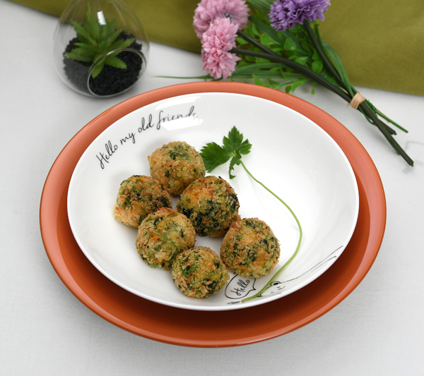 단호박(80g), 양파(20g), 당근(10g), 참나물(10g), 달걀(1개), 모짜렐라치즈(10g), 빵가루(500g), 식용유(500g), 소금(1g), 후춧가루(0.5g)