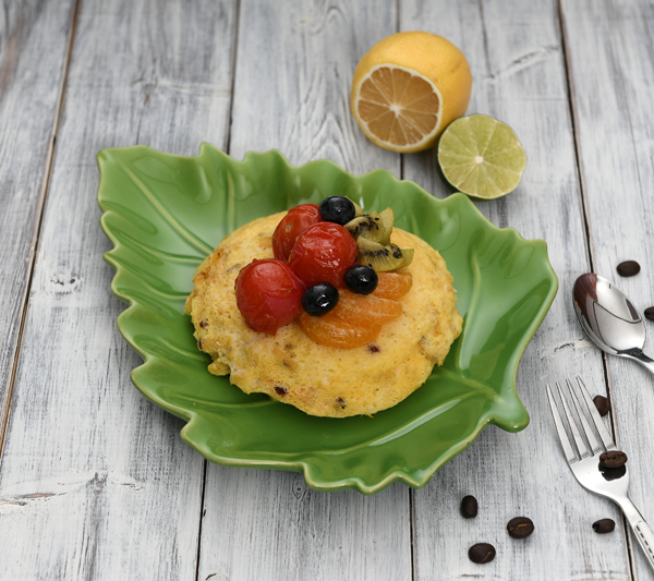 - 6. 4번을 접시에 뒤집어 담고 저당 과일잼을 곁들인다.