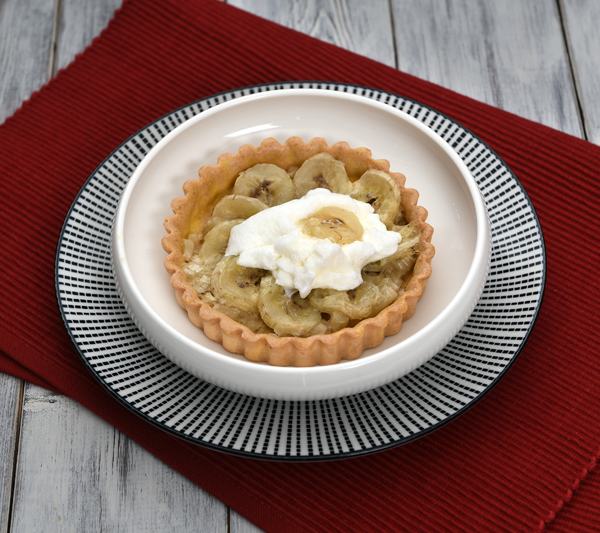 - 3. 타르트팬에 버터를 바른 뒤 반죽을 얇게 깔고 그 위에 바나나를 담고 소금을 조금 뿌린다.