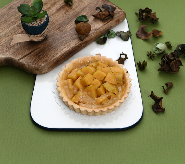 - 6. 타르트에 콩가루 고구마 크림을 올리고 그 위에 구운 고구마와 꿀을 올린다.