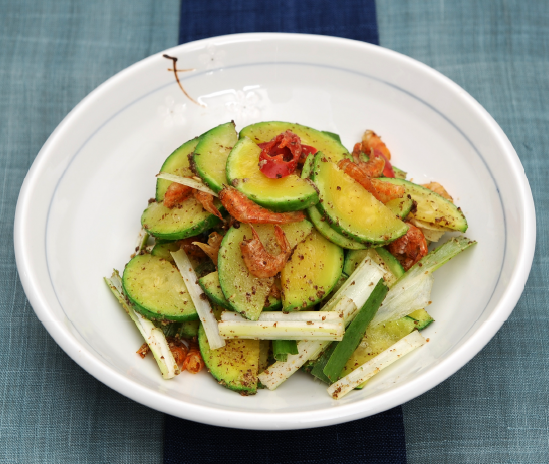 애호박(150g), 소금(0.5g), 양파(20g), 대파(10g) 홍고추(10g), 들기름(20g), 다진 마늘(5g), 건새우(20g) 들깨가루(30g)