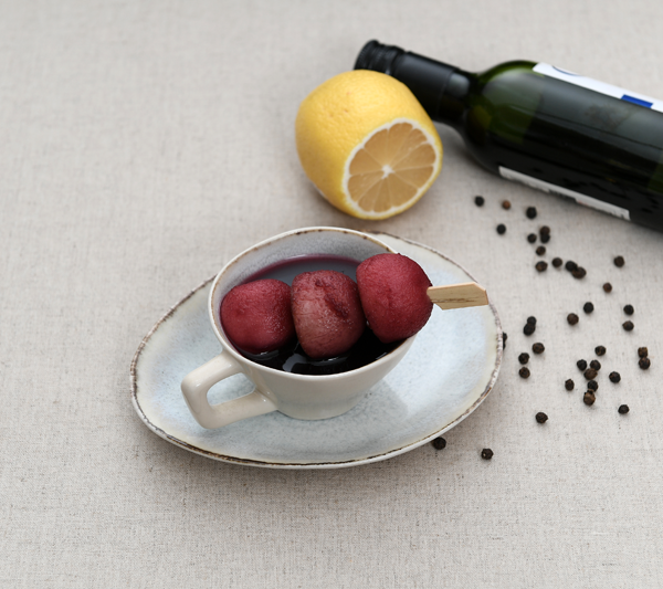 - 2. 냄비에 와인을 넣고 계피, 통후추와 함께 약불에서 끓인다.
