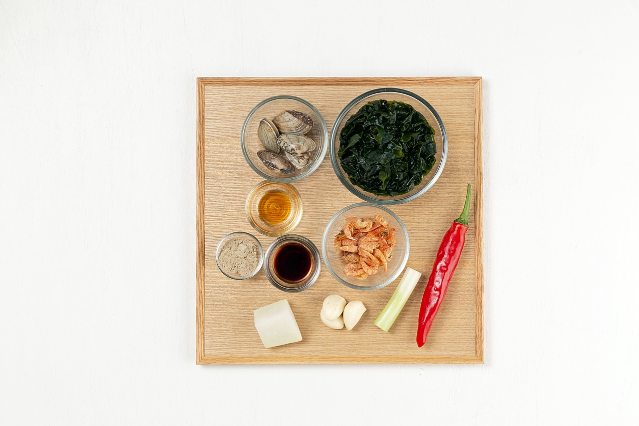 - 1. 바지락은 해감하고 미역은 20분 동안 불린다.