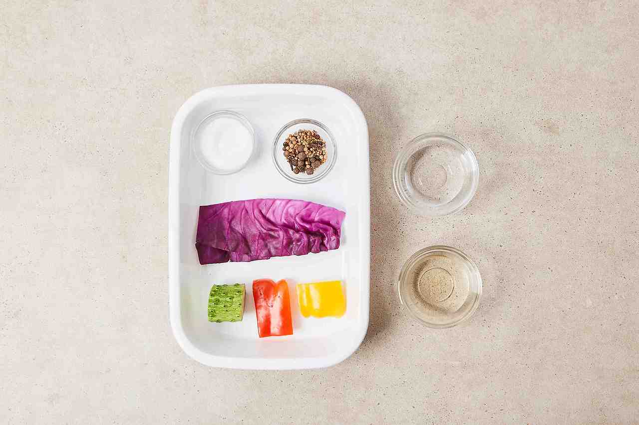 •필수 재료 : 오이(20g), 파프리카(20g), 적양배추(20g) •피클물 : 설탕(15g), 식초(15g), 피클링스파이스(5g), 물(15g)