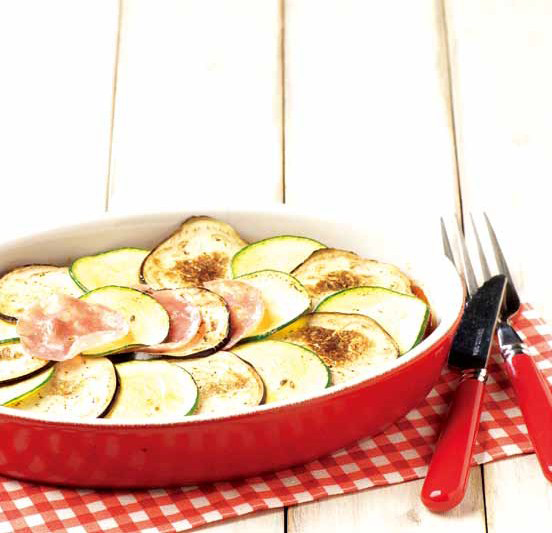 - 3. 오븐용 팬에 토마토 소스를 넓게 펴준 뒤 애호박, 가지, 양송이버섯, 살라미를 겹치게 넣고 180℃로 예열한 오븐에 넣고 30분 구워 완성한다본 저작물은 '식품의약품안전처'에서 작성하여 개방한 '조리식품의 레시피 DB'을 이용하였으며,