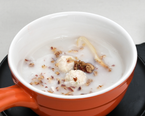 - 6. 믹서에 인삼과 대추, 불린 찹쌀, 물을