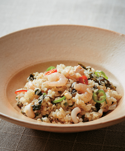 - 5. 밥을 넣고 소금을 넣어 볶다가