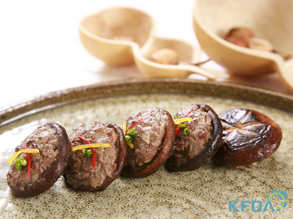 표고버섯 30g, 다진 쇠고기 등심 20g, 양파 3g, 대파 2.5g, 다진 마늘 1.25g, 간장 3g, 설탕 2g, 참기름 1g, 말린 청양고추 0.5g