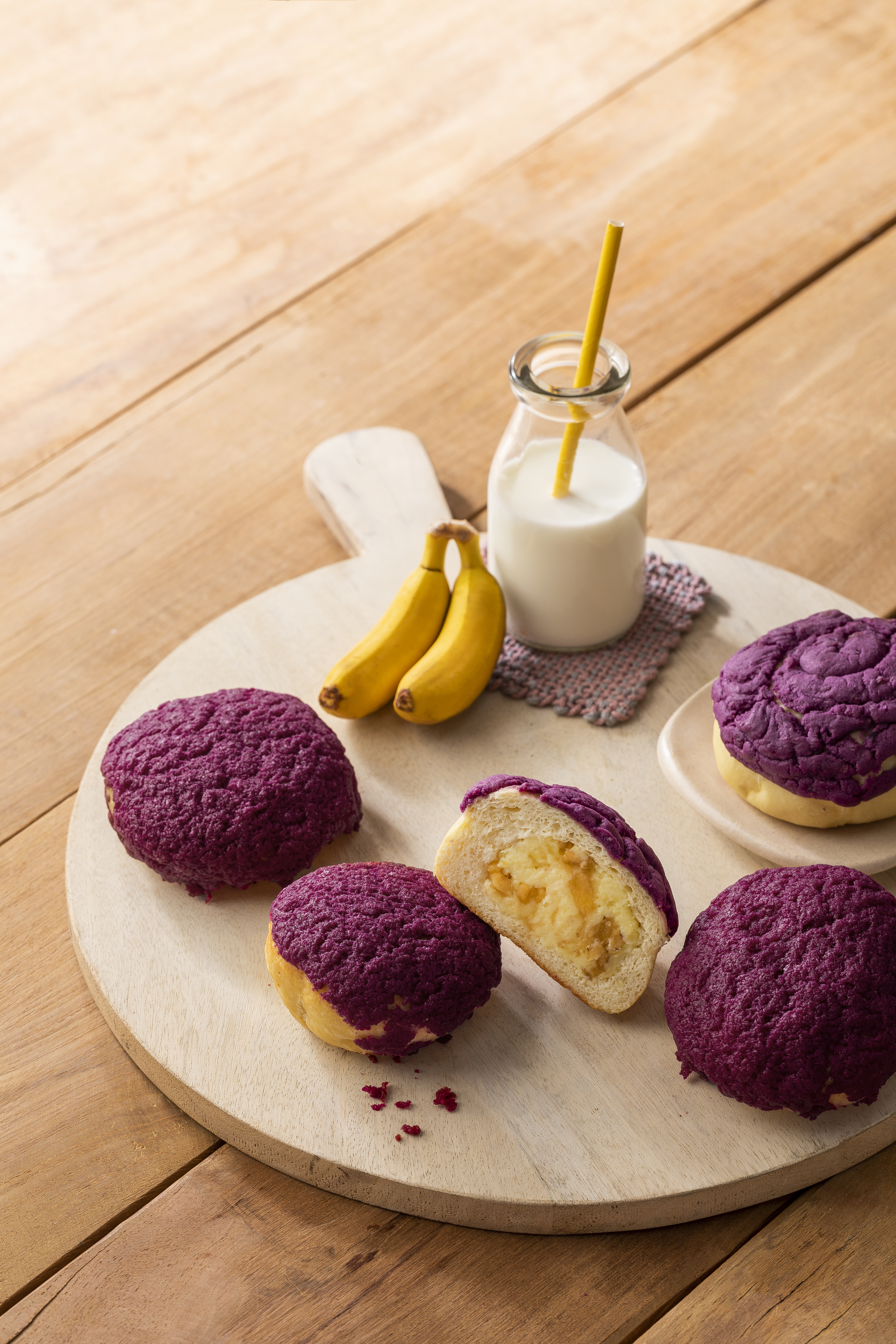 (반죽재료) 강력분 290g, 박력분 70g, 이스트 4g, 소금 5g, 달걀 50g(1개), 무염버터 30g , 바나나 180g, 밤고구마 130g, 물 150g (속재료) 삶은 밤고구마 380g, 바나나 180g, 바나나슬라이스 (버터크림재료) 삶은 자색고구마 190g, 삶은 밤고구마 100g, 박력분 30g, 달걀 50g(1개) ,버터120g, 물 100g