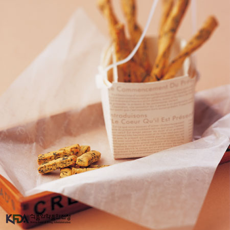 - 6. 자른 반죽을 오븐팬에 올려 180℃로 예열된 오븐에 10분간 굽는다.본 저작물은 '식품의약품안전처'에서 작성하여 개방한 '조리식품의 레시피 DB'을 이용하였으며,