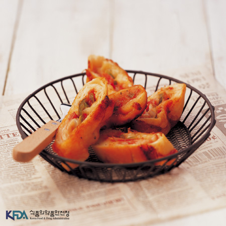 - 6. 반죽을 말아서 윗부분에 칼집을 넣은 뒤 175℃로 예열된 오븐에 굽는다.본 저작물은 '식품의약품안전처'에서 작성하여 개방한 '조리식품의 레시피 DB'을 이용하였으며,