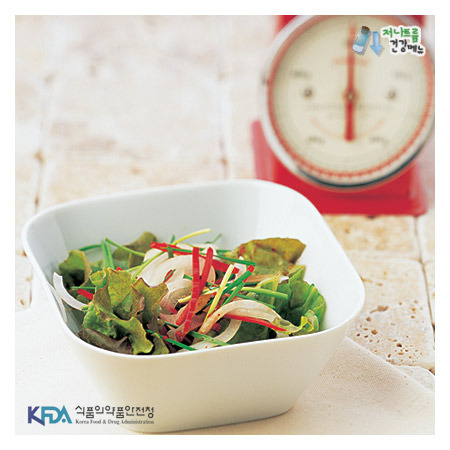 상추 15g, 간장 2g, 물 2g, 매실농축액 5g, 고춧가루 1g, 통깨 0.4g, 식초 0.4g, 영양부추 10g, 양파 5g, 홍고추 3g